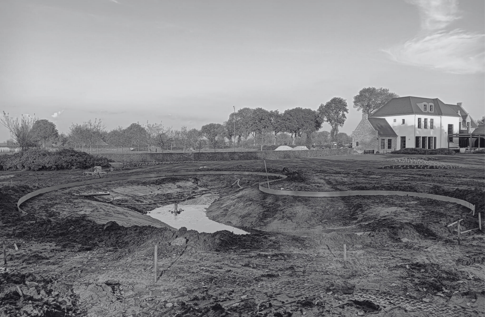 Het landgoed van de familie telt in totaal 25 hectare en valt onder de Natuurschoonwet. Hiervan mocht 2,5 hectare “vrij” worden ingevuld. Aan TIM Exclusive Gardens de taak om dit stuk landschappelijk in te passen en tóch een eigen signatuur te geven. Een signatuur die goed past bij Jannet en Diederik, maar ook bij hun woning die in de stijl van een Belgische hoeve is gebouwd.