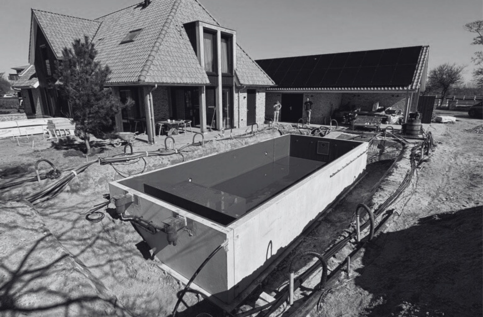 De familie mocht dan overtuigd zijn dat het design onwrikbaar was. Een andere factor dwong ons tóch tot een aanpassing. En dat was geen nuance-verschilletje. Het bleek namelijk dat het waterschap (in uitzonderlijke situaties) het recht heeft om vanaf het erf van de familie onderhoud te plegen aan een aangrenzende sloot. Daardoor moesten we het zwembad anders positioneren.