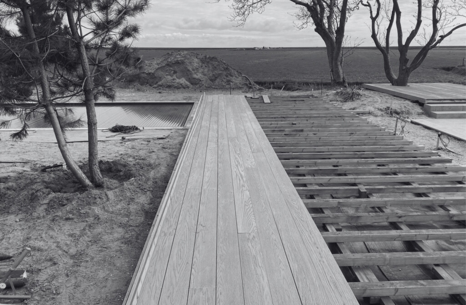 Als projectmanager maakte Evan geregeld de overtocht naar Terschelling. Simon: “Natuurlijk is er telefonisch veel mogelijk. Maar Evan was ook vaak ter plekke aanwezig. Bijvoorbeeld bij het plaatsen van de zwembadwanden. Of toen de beplanting arriveerde.”
