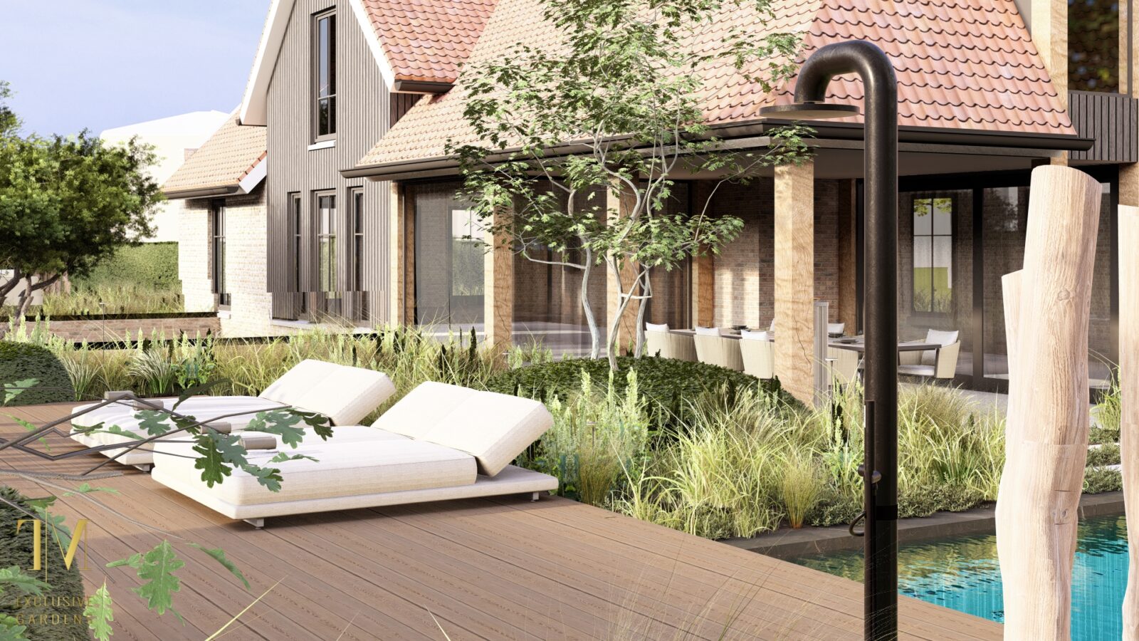 Unwind and relax! In deze prachtige tuin op Terschelling met een moderne beachlook. Het ontwerp straalt een heerlijke strand vibe uit, waarbij organische vormen moeiteloos samenkomen met strakke lijnen.