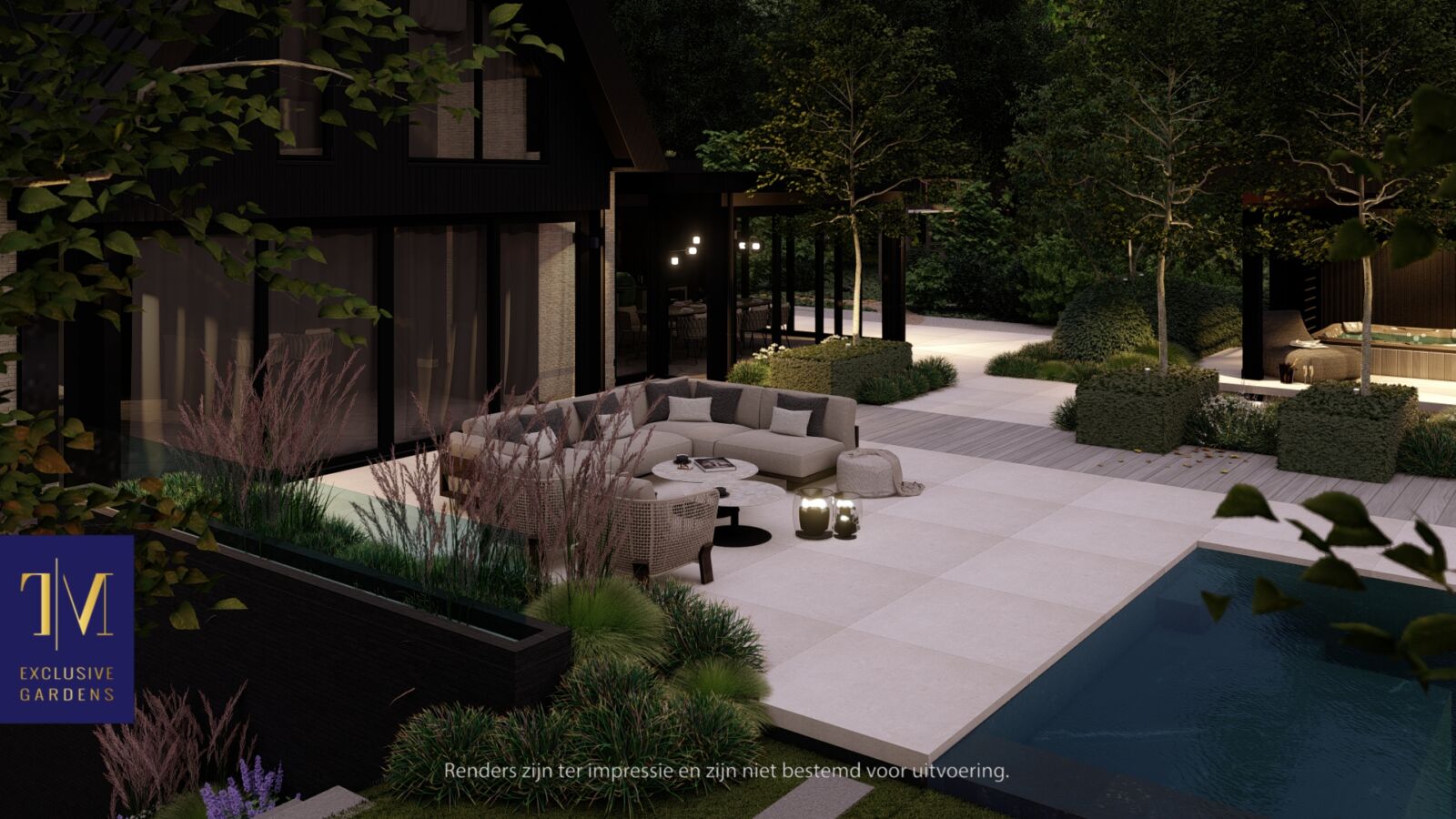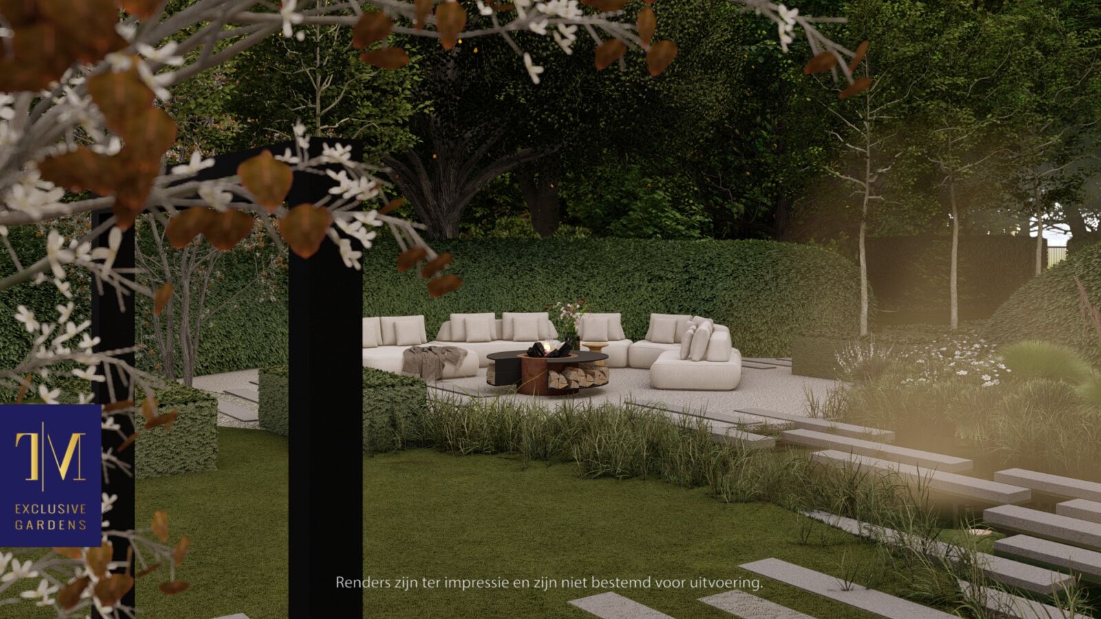 De combinatie van strakke vormgeving met organische elementen geeft deze tuin een bijzondere charme.