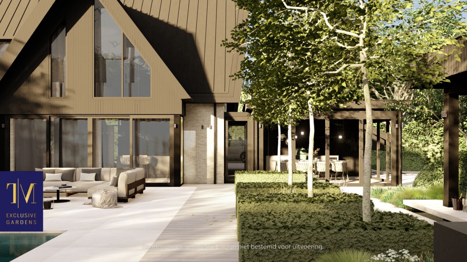 Strakke belijning gecombineerd met speelse elementen zorgen samen voor een krachtig geheel wat in zijn totaliteit past bij de architectuur en de omgeving.
